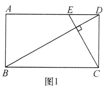 15. (1)如图 1,在矩形 ABCD 中,$AD=7,CD=4$,E 是 AD 上的一点,连接 CE,BD,且$CE⊥BD$,则$\frac {CE}{BD}$的值为