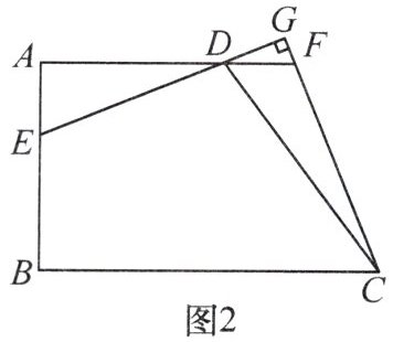 (2)证明:过点C作$CH\perp AF$,垂足为H,则四边形ABCH为矩形.$\therefore AB=CH$.$\because$在$\triangle FCH$和$\triangle FDG$中,$\angle H=\angle G=90^{\circ}$,$\angle CFH=\angle DFG$,$\therefore \angle FCH=\angle FDG=\angle ADE$.又$\because \angle A=\angle H=90^{\circ}$,$\therefore \triangle DEA\backsim \triangle CFH$.$\therefore \frac{DE}{CF}=\frac{AD}{HC}$.$\because \frac{DE}{CF}=\frac{AD}{AB}$,$\therefore DE\cdot AB=CF\cdot AD$.
