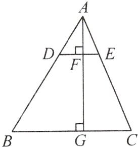 2. 如图,已知$\triangle ADE \sim \triangle ABC$,相似比为$1:3$,则$AF:FG=$(