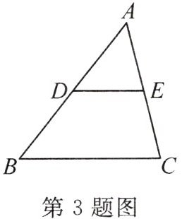 3. (2023·南通)如图,在$\triangle ABC$中,$D$,$E$分别是$AB$,$AC$的中点,连接$DE$,则$\frac{S_{\triangle ADE}}{S_{\triangle ABC}}=$