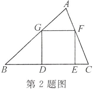 2. 如图,已知正方形DEFG的顶点D,E在△ABC的边BC上,顶点G,F分别在边AB,AC上。如果BC=4,△ABC的面积是6,那么这个正方形的边长是(
