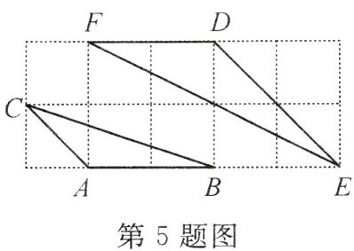 5. 如图,如果$△ABC$与$△DEF$都是正方形网格中的格点三角形(顶点在格点上),那么$S_{△DEF}:S_{△ABC}$的值为