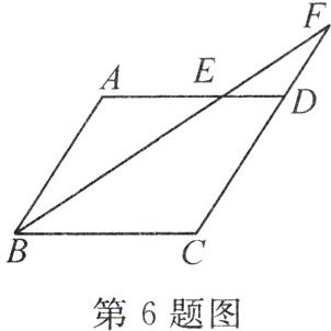 6. 如图,$E$是$□ ABCD$的边$AD$上的一点,且$\frac{DE}{AE} = \frac{1}{2}$,连接$BE$并延长交$CD$的延长线于点$F$。若$DE = 3$,$DF = 4$,则$□ ABCD$的周长为