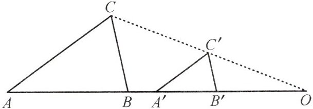 11. 如图,$ \triangle ABC $ 与 $ \triangle A'B'C' $ 是位似图形,点 $ A $,$ B $,$ A' $,$ B' $,$ O $ 共线,点 $ O $ 是位似中心.
