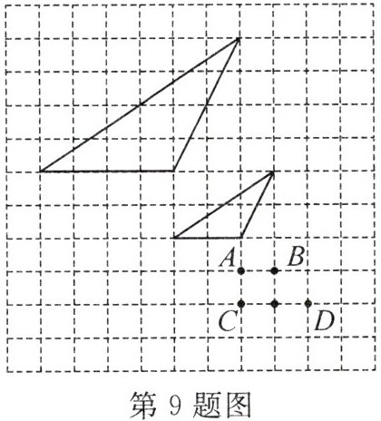 9. 如图,网格中的两个三角形是位似图形,它们的位似中心是(
