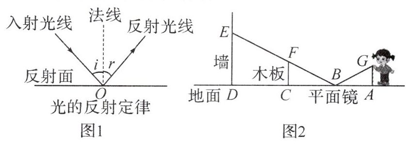 14. 新考向 跨学科(2023·南宁民族中学期中)【学科融合】如图 $1$,在反射现象中,反射光线、入射光线和法线都在同一个平面内;反射光线和入射光线分别位于法线两侧;反射角 $r$ 等于入射角 $i$. 这就是光的反射定律.