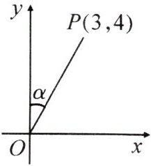 4. 如图,在平面直角坐标系内有一点$P(3,4)$,连接$OP$,则$OP$与$y$轴正方向所夹锐角$\alpha$的正弦值是(