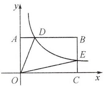 .第三步:列方程:$ \because S_{四边形ODBE} = S_{矩形AOCB} - S_{\triangle AOD} - S_{\triangle COE} = 6 $,$ \therefore $ 代入点 $ B $ 坐标后,解得 $ k = $