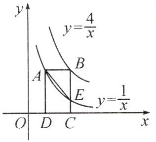 (2024·广西大学附中月考)如图,矩形 $ ABCD $ 的一边 $ CD $ 在 $ x $ 轴上,顶点 $ A,B $ 分别落在双曲线 $ y = \frac{1}{x},y = \frac{4}{x} $ 上,边 $ BC $ 交 $ y = \frac{1}{x} $ 于点 $ E $,连接 $ AE $,则 $ \triangle ABE $ 的面积为