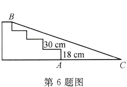 6. 如图,某单位门前有四级台阶,每级台阶高为 $ 18 $ cm,宽为 $ 30 $ cm,现计划把台阶右侧改成斜坡,台阶的起点为点 $ A $,斜坡的起点为点 $ C $,准备设计斜坡 $ BC $ 的坡度为 $ i = 1:5 $,则 $ AC $ 的长度是(