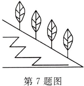 7. 如图,在坡度为 $ 1:2 $ 的山坡上种树,要求株距(相邻两树间的水平距离)是 $ 6 $ m,则斜坡上相邻两树间的坡面距离是