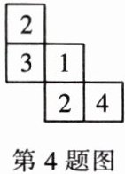 4. 如图,这是从上面看到的一个由 $ 12 $ 个小立方块搭成的几何体的形状图,其中小正方形中的数字表示在该位置的小立方块的个数,请你画出从正面和左面看到的这个几何体的形状图。