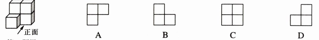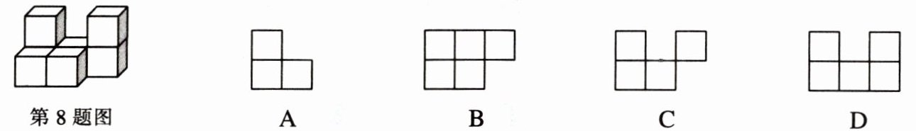 8. (2024·内蒙古改) 由 $ 7 $ 个完全相同的小立方块组成的几何体如图所示,下列给出的四个平面图形中不属于该几何体从三个方向看到的形状图的是( )