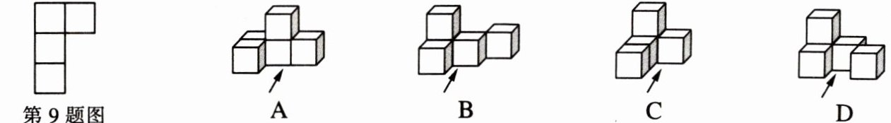 9. (2024·东营改) 某几何体从上面看到的形状图如图所示,下列几何体(箭头所示为正面)从上面看到的形状图与其相同的是( )
