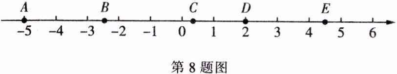 8. 分别写出数轴上点 $ A $,$ B $,$ C $,$ D $,$ E $ 表示的有理数。