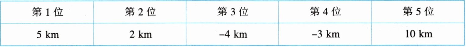 7. 高考期间,某出租车驾驶员参加爱心送考活动,他从位于北京路的家出发,在东西方向的北京路上连续免费接送5位高考考生,行驶路程记录如下(规定向东为正,向西为负,单位km):