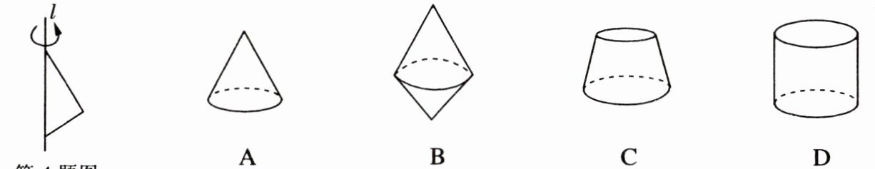4. 将如图所示的三角形绕直线 $ l $ 旋转一周后得到的几何体是( )