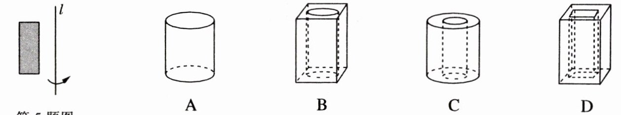 5. 将如图所示的图形绕着给定的直线 $ l $ 旋转一周后形成的几何体是( )