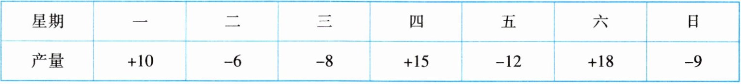 |产量|+10|-6|-8|+15|-12|+18|-9|