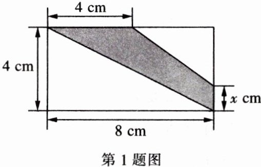 解:(1)由图形可知,$S=4×8-\frac{1}{2}×4×8-\frac{1}{2}×4·(4-x)=16-8+2x=(8+2x)\ cm^2$。(2)将$x=3$代入上式,$S=8+2×3=14\ (cm^2)$。
