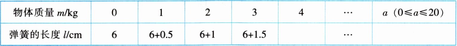|物体质量m/kg|0|1|2|3|4|…|a (0 ≤ a ≤ 20)|