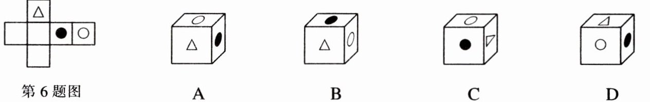 6. 把下面的平面图形折叠起来,围成的正方体是( )