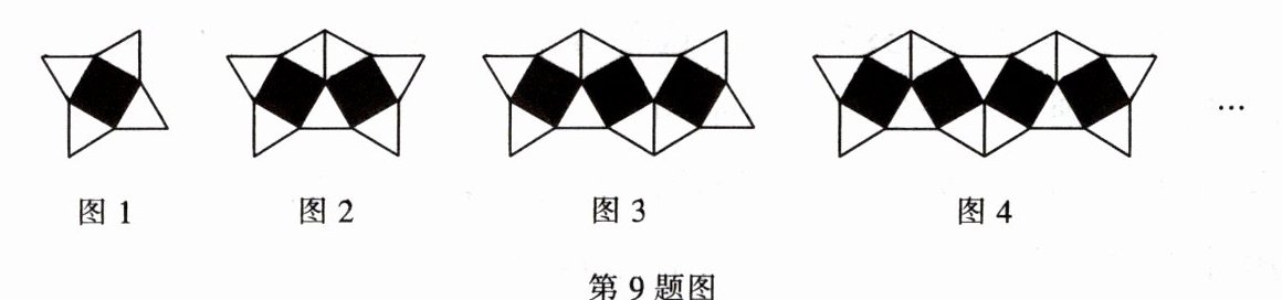 9. 如图是一组有规律的图案,它们是由边长相同的正方形和等边三角形拼接而成的。
