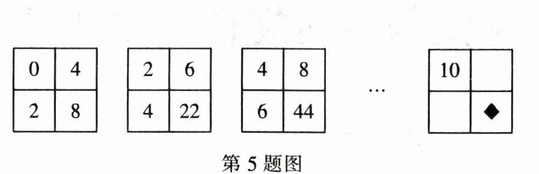 5. 如图所示,各正方形的四个数之间都有相同的规律,根据此规律,“◆”位置的数是____。