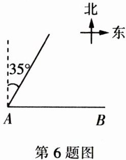 6. 如图,码头 $ A $ 在码头 $ B $ 的正西方向,甲、乙两船分别从 $ A $,$ B $ 同时出发,并以等速驶向某海域,甲的航向是北偏东 $ 35 ^ { \circ } $,为避免行进中甲、乙相撞,则乙的航向不能是( )