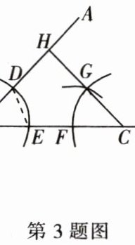 3. 如图,已知$∠AOB = 48^{\circ}$,点$C为射线OB$上一点,用尺规按如下步骤作图:①以点$O$为圆心,以任意长为半径作弧,交$OA于点D$,交$OB于点E$,②以点$C$为圆心,以$OD$长为半径作弧,交$OC于点F$,③以点$F$为圆心,以$DE$长为半径作弧,交前面的弧于点$G$,④连接$CG并延长交OA于点H$,则$∠OHC$的度数为( )