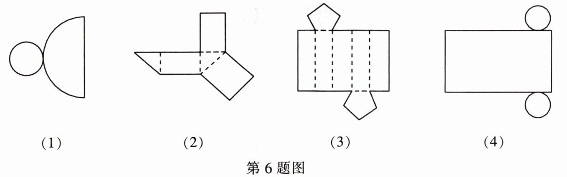 6. 想一想:下面各展开图都能折叠成什么几何体?