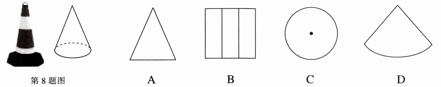 8. (2024·青海) 如图,生活中常见的路障锥通常是圆锥的形状,它的侧面展开图是( )