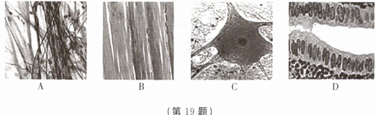 19. 如图为人体四种组织结构图,请回答下列问题。