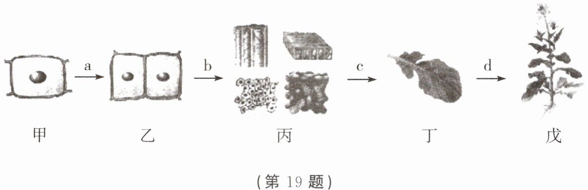 ,所形成的图丙所示的四种结构在结构层次上叫作组织