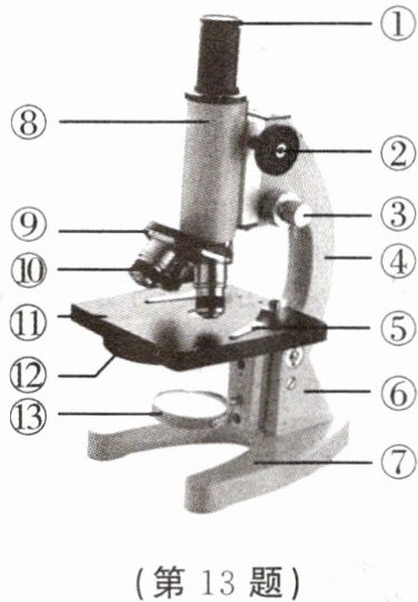 13. 请根据显微镜示意图并结合有关操作技能,回答下列问题。