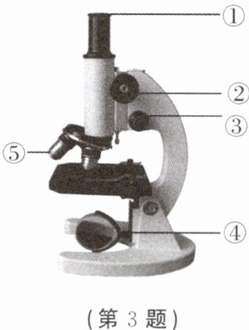 3. 对微小的物体和细胞进行观察,应当借助显微镜。右图是普通光学显微镜结构图,可以将观察材料放大的结构组合为(