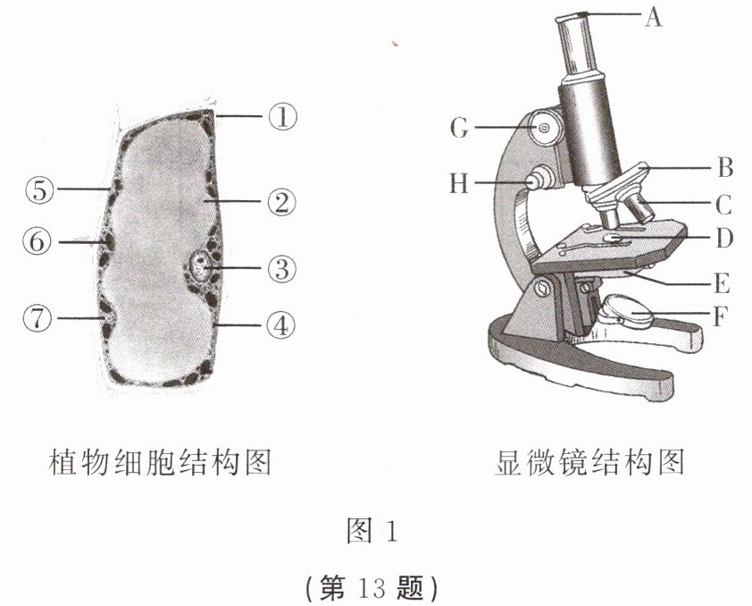 (填序号和结构名称)。(4)图2为用显微镜观察的视野图。若从视野一调整为视野二,需要调节显微镜的