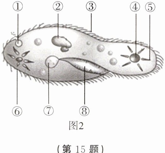(4)用吸管吸取A瓶液体,在显微镜下观察到如图2所示的草履虫。草履虫靠[③]