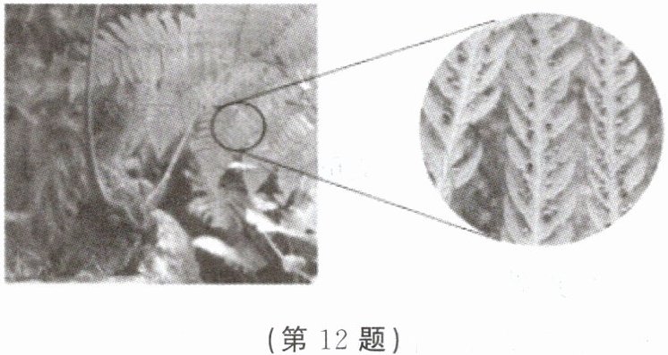 12. 如图是我国濒危保护植物——金毛狗蕨,它起源于侏罗纪时代,因其地上的根状茎酷似金毛狗头而得名。其根状茎粗大,顶端生出一丛羽状叶,叶背面有许多褐色的斑块隆起。下列叙述不正确的是(