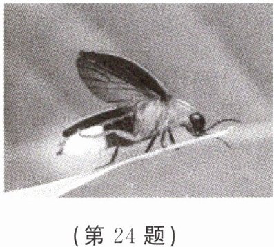24. 萤火虫能够发出多种颜色的荧光,夜晚它飞行在草丛中形成美丽的景色。它的身体分为头、胸、腹三部分,体表有外骨骼。根据以上信息判断,萤火虫属于(