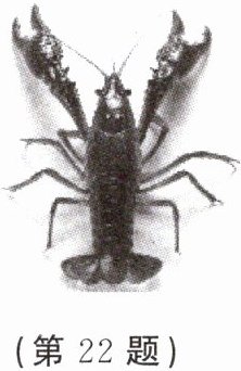 22. 小龙虾是一种很受欢迎的食材,很多人喜爱吃小龙虾。小龙虾的体表有坚硬的外骨骼,身体和附肢都分节。据此判断,小龙虾属于(
