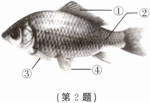 2. 如图表示在观察鲫鱼的实验中所看到的鲫鱼形态特征。下列相关叙述错误的是 (