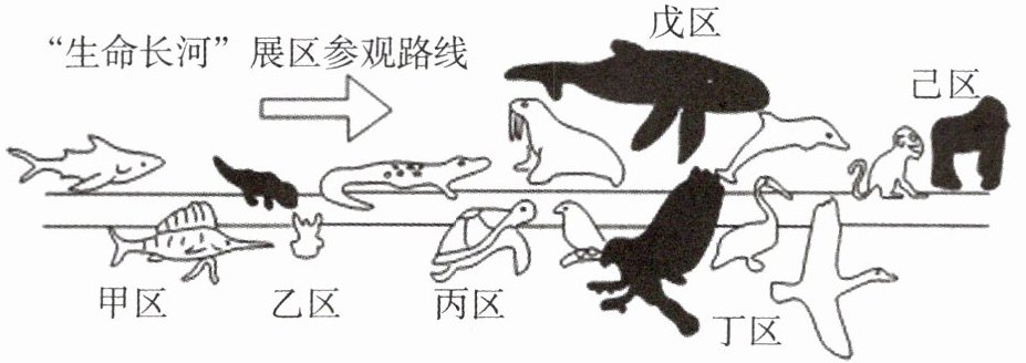 10. 如图是自然博物馆展区参观路线图,若想参观爬行动物,应前往的展区是 (