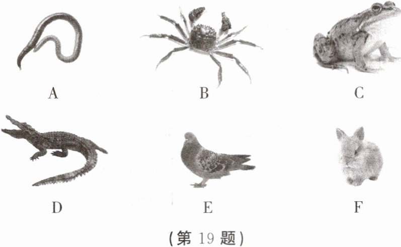 19. 动物之美,是一种个性之美,是一种充满竞争与进化之美,是一种自然之美。请仔细观察图中的动物,概述各种动物的主要特征。
