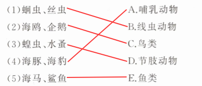 (5)海马、鲨鱼 E. 鱼类