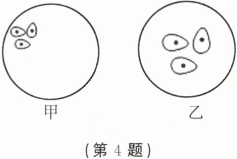 4. 某同学制作了人的口腔上皮细胞临时装片,并用显微镜观察到不同放大倍数的视野甲、乙,如图所示。下列说法错误的是(