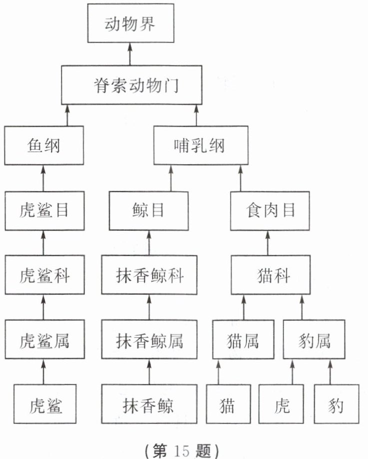 这个分类等级上与抹香鲸分开。 (4)虎鲨属于鱼纲,其体形呈流线型,用