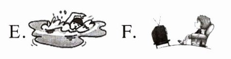 选择正确的单词写在横线上,然后将对应图片的字母序号写在括号内。