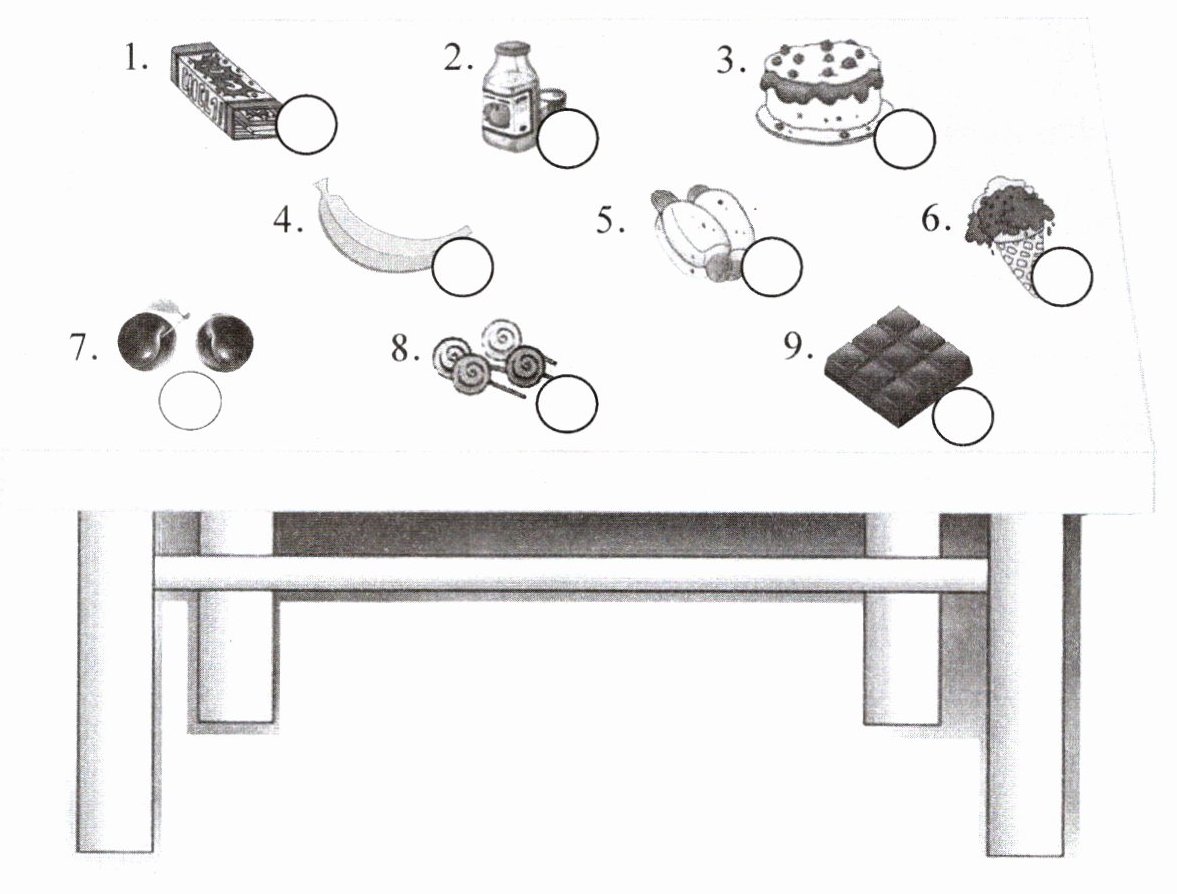 听录音,判断图片是否与录音内容相符,相符的在圆圈内写"T",不相符的写"F"。