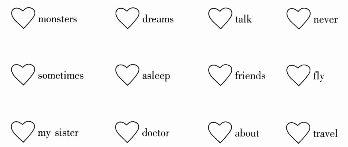 1. my sister 2. about 3. never 4. monsters 5. dreams My sister never dreams about monsters.